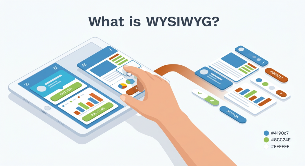What You See Is What You Get; describes an online editor that lets you easily build blogs, websites and apps. Often also called a ‘drag-and-drop’ editor, these tools take away the need to know code and have professional design skills to build an online presence. It is often pronounced “wizzy-wig.”